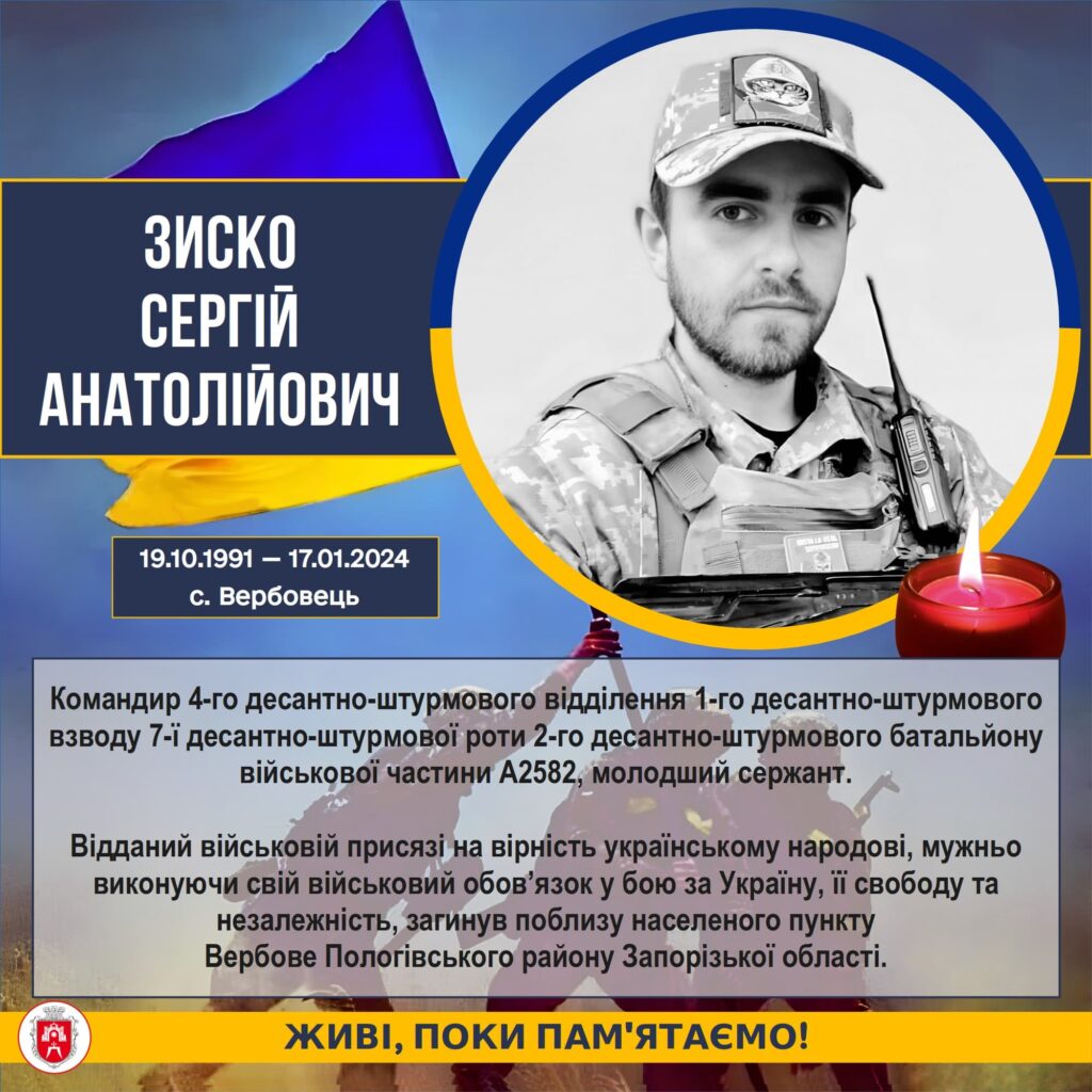 Сьогодні, 17 січня, минає друга річниця від дня загибелі воїна Сергія Зиска.